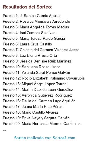 - Puesto 20: Maria Hortencia Moreno Carrizalez