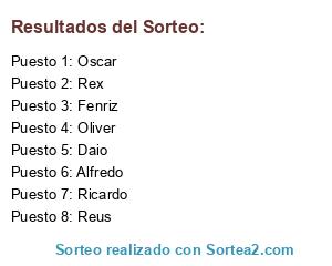 Lista de participantes: Alfredo, Fenriz, Oscar, Ricardo, Oliver, Reus, Daio, Rex.