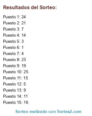 Resultados del sorteo: