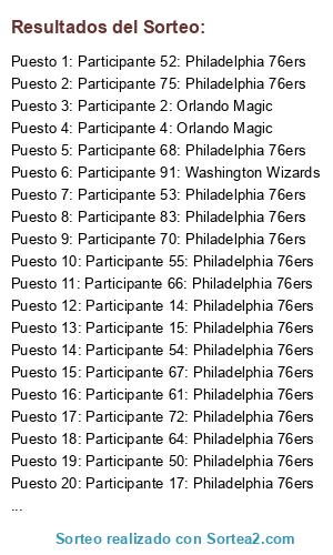 - Puesto 20: Participante 17: Philadelphia 76ers