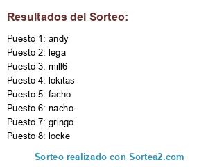 Lista de participantes: andy, facho, gringo, lega, locke, lokitas, mill6, nacho.