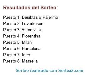 Lista de participantes: Aston villa, Leverkusen, Fiorentina, Inter, Besiktas o Palermo, Barcelona, Milan, Marsella.
