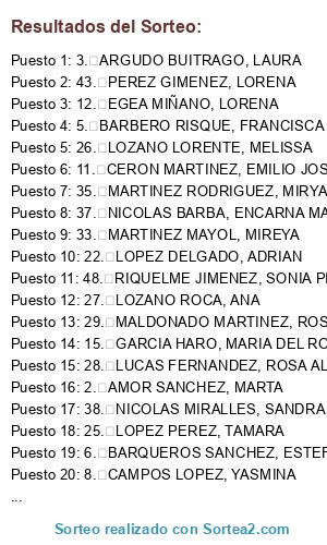 - Puesto 27: 45. PEREZ PEREZ, ISABEL MARIA