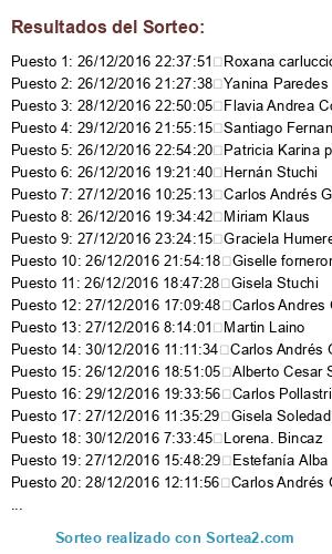 - Puesto 3: 28/12/2016 22:50:05 Flavia Andrea Córdoba