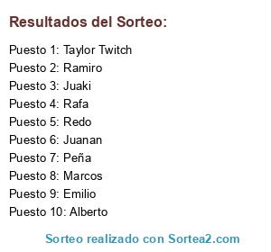 Lista de participantes: Redo, Rafa, Taylor Twitch, Ramiro, Juaki, Emilio, Marcos, Peña, Juanan, Alberto.