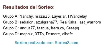 Lista de participantes: angus77, azulgrana77, Creepg, Demere, elhefe, fazcue, hern.cs, HVandelay, last_warriors, Layer.ar, mazzi23, mephiz, Nanchy, 0TTo, RealKaka, sebalon.