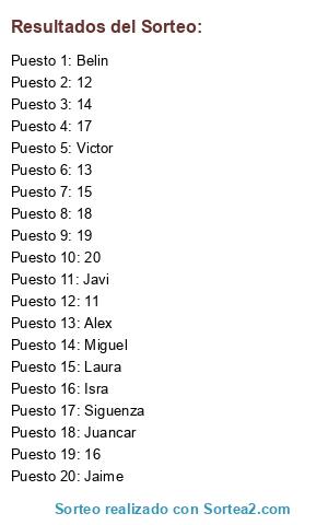 Resultados del sorteo:
