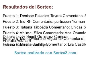 - Ganador 1: Denisse Palacios Tavara Comentario: Annie PG Any Fuentes Alexandra Pamela Ramirez Savedra Angie Ronda Rodriguez <3 partipen