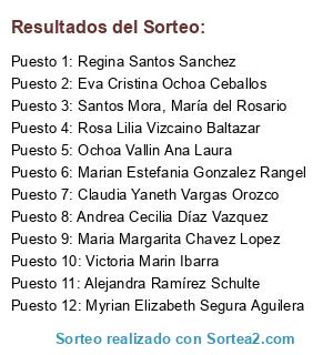 Lista de participantes: Claudia Yaneth Vargas Orozco, Rosa Lilia Vizcaino Baltazar, Marian Estefania Gonzalez Rangel, Myrian Elizabeth Segura Aguilera, Alejandra Ramírez Schulte, Andrea Cecilia Díaz Vazquez, Eva Cristina Ochoa Ceballos, Regina Santos Sanchez, Santos Mora, María del Rosario, Victoria Marin Ibarra, Maria Margarita Chavez Lopez, Ochoa Vallin Ana Laura.