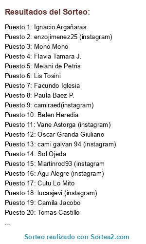 Lista de participantes: Cutu Lo Mito, Paula Baez P., Aylen Soli, Belen Heredia, Lis Tosini, Paloma Tosini, Flavia Tamara J., Melani de Petris, Juan Arias, Guillermina Tosini, Mercedes Ducca, Valentina Jacobo, Mono Mono, Gisell Rossi, Oscar Granda Giuliano, Ignacio Argañaras, Andy Abregú, Nico Olivera, Euge Sal, Facundo Iglesia, Tomas Castillo, Camila Jacobo, Sol Ojeda, Mercedes Lezana, Alexis Camaño, Vane Astorga (instagram), Agu Alegre (instagram), Graziana Plaza (instagram), Benja Martinez (instagram), Martinrod93 (instagram, cami galvan 94 (instagram), mikadiazr (instagram), camiraed(instagram), lucasjevi (instagram), flooorrojas (instagram), enzojimenez25 (instagram).