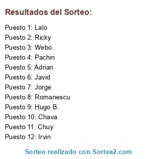 Resultados del sorteo: