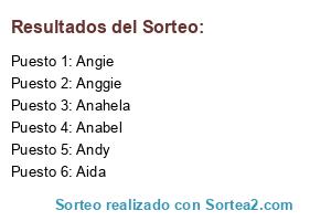 Lista de participantes: Aida, Anabel, Anggie, Anahela, Andy, Angie.