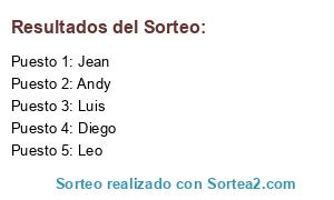 Lista de participantes: Andy, Leo, Jean, Diego, Luis.