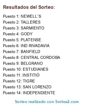 Resultados del sorteo: