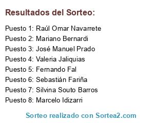Lista de participantes: Carlos Suárez, Hernán Moracid, Hugo Morales, Valeria Jaliquias, Silvina Souto Barros, Héctor Ricardo Huarte, Raúl Omar Navarrete, Walter Barros, Darío Hernández, Fernando Fal, Gerardo Blanchet, Delfina Buenanueva, Mauricio Rojas, Rodolfo Vásquez, Camilo Ciruzzi, Jorge Iturra, Edgardo Barrionuevo, Marcelo García, José Manuel Prado, Gustavo Baggio, David Sánchez, Walter Pérez, Ana Calducci, Sebastián Fariña , Andrea Durán, Yamil Regules, Marcos Arcas, Denis Godoy, Mariano Bernardi, Marcelo Idizarri, Jorge Garro.
