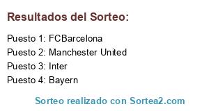 Lista de participantes: FCBarcelona, Manchester United, Inter, Bayern.