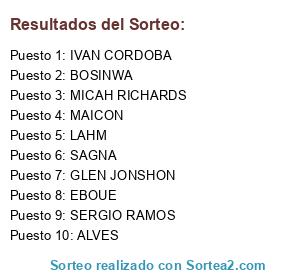 Lista de participantes: ALVES, MAICON, SERGIO RAMOS, GLEN JONSHON, MICAH RICHARDS, EBOUE, IVAN CORDOBA, BOSINWA, LAHM, SAGNA.