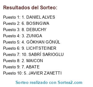Lista de participantes: DANIEL ALVES, MAICON, JAVIER ZANETTI, BOSINGWA, GOKHAN, ABATE, SABRI SARIOGLU, FANNI, JOÃO FERREIRA, LICHTSTEINER, .
