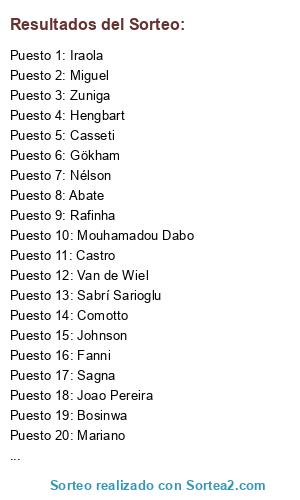 Resultados del sorteo: