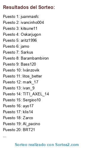 Lista de participantes: V3sti4, Guti, Ponzio, Sesi, Mario, Adri, Kentik, Jordi, Jorge, Riera, Mustik, Jugador 1, Josito, Correa, Diarce, Jugador 2.