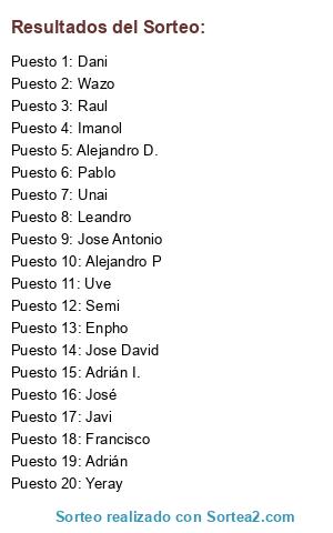 Resultados del sorteo: