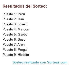 Lista de participantes: Beivi, Pregal, Xcorpiom, Jonyrambo, Parrita, Mindix, Frakotirador, Luna, Danivalde, Snake 0012, Anicolao, Havi Stae, JorgeNeymar, Padrone, Jonan, Emilio Snake, Sentenza, Eckae, Nutria, Fein, King Magic, Kantus, Fermin, Qememetes.