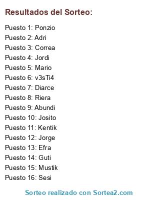 Resultados del sorteo: