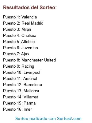Lista de participantes: Inter , Valencia , Juventus , Barcelona , Real Madrid , Manchester United , Milan , Liverpool , Villarreal , Mallorca , Arsenal , Ajax , Atletico , Chelsea , Parma , Racing.