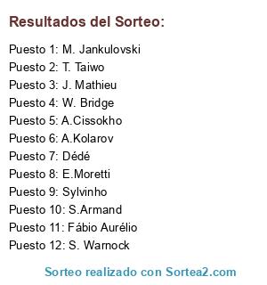 Lista de participantes: S. Warnock, S.Armand, J. Mathieu, Dédé, T. Taiwo, Fábio Aurélio, A.Cissokho, M. Jankulovski, W. Bridge, Sylvinho, E.Moretti, A.Kolarov.