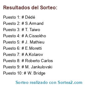 Lista de participantes: # J. Mathieu, # S.Armand, # Dédé, # T. Taiwo, # A.Cissokho, # E.Moretti, # W. Bridge, # A.Kolarov, # M. Jankulovski, # Roberto Carlos.