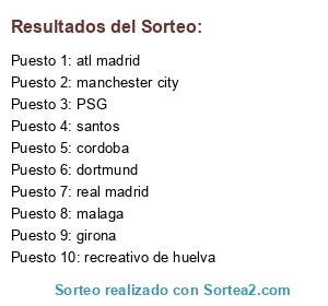 Lista de participantes: PSG, dortmund, malaga, cordoba, girona, santos, real madrid, manchester city, atl madrid, recreativo de huelva.