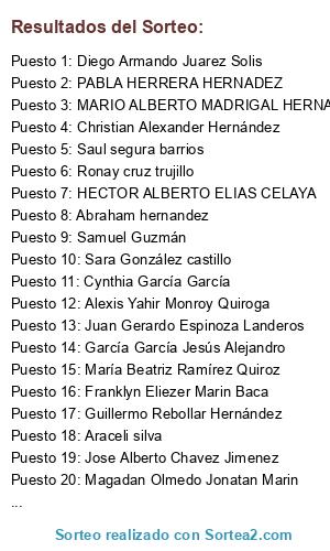 - Puesto 3: MARIO ALBERTO MADRIGAL HERNANDEZ