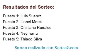 Lista de participantes: Cristiano Ronaldo, Lionel Messi, Neymar Jr., Luis Suarez, Thiago Silva.
