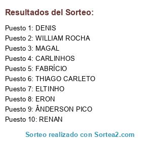 Lista de participantes: WILLIAM ROCHA, RENAN, ÂNDERSON PICO, ELTINHO, CARLINHOS, FABRÍCIO, MAGAL, ERON, DENIS, THIAGO CARLETO.