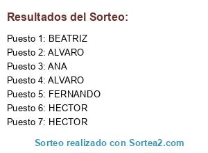 Resultados del sorteo: