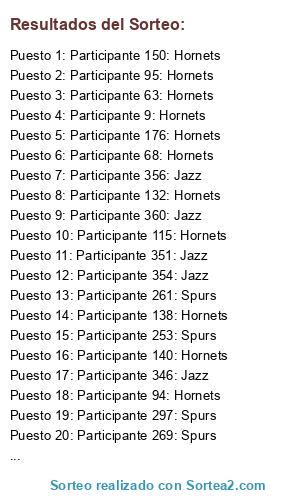 - Puesto 345: Participante 30: Hornets