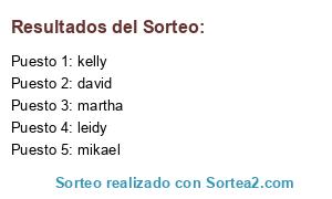 Lista de participantes: martha, mikael, leidy, kelly, david.