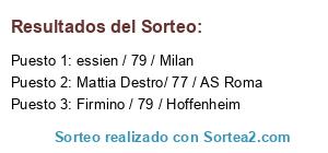 Lista de participantes: Mattia Destro/ 77 / AS Roma, Firmino / 79 / Hoffenheim, essien / 79 / Milan.