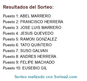 Lista de participantes: FELIPE MACHADO, JESUS QUEVEDO, RAMON GONZALEZ, TATO QUINTERO, SUSO GALVAN, ABEL MARRERO, JOSE LUIS MARRERO, EUSEBIO GIL, FRANCISCO HERRERA, ANDRES HERRERA.