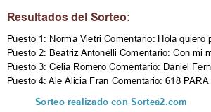 - Ganador 1: Norma Vietri Comentario: Hola quiero participar y para ir con Day mi hija 637