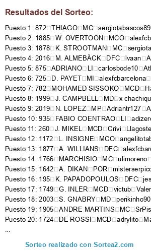 Resultados del sorteo: