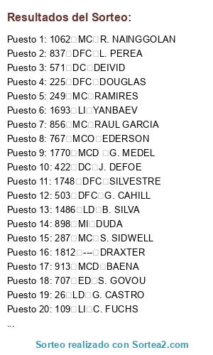 Resultados del sorteo: