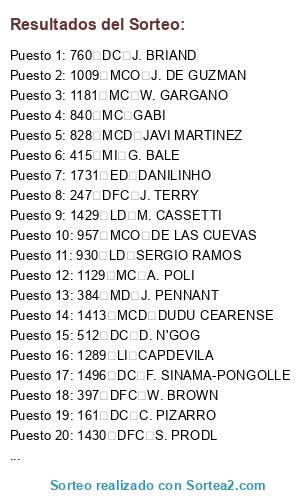 Resultados del sorteo: