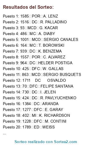 Resultados del sorteo:
