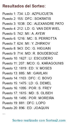 Resultados del sorteo: