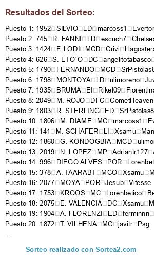 Resultados del sorteo: