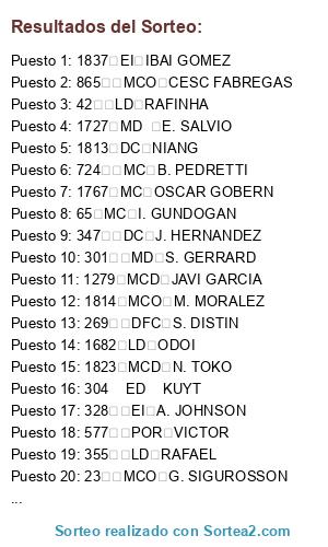 Resultados del sorteo:
