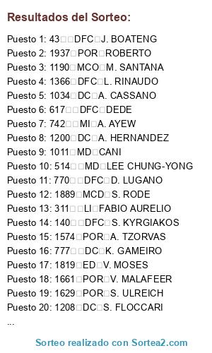Resultados del sorteo: