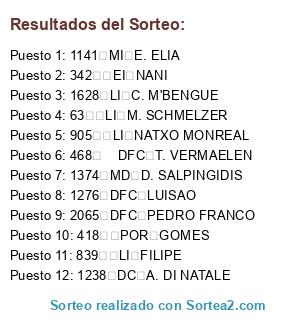 Resultados del sorteo: