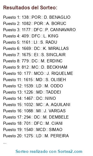 Accesibilidad del sorteo: El sorteo es público. Todo el mundo podrá acceder a él desde el listado de sorteos guardados.